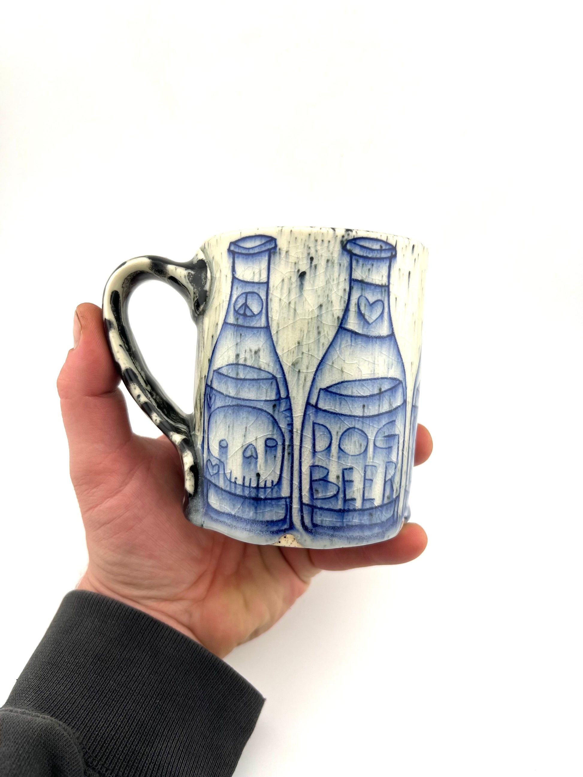 Wheel thrown porcelain mug with inlaid designs
