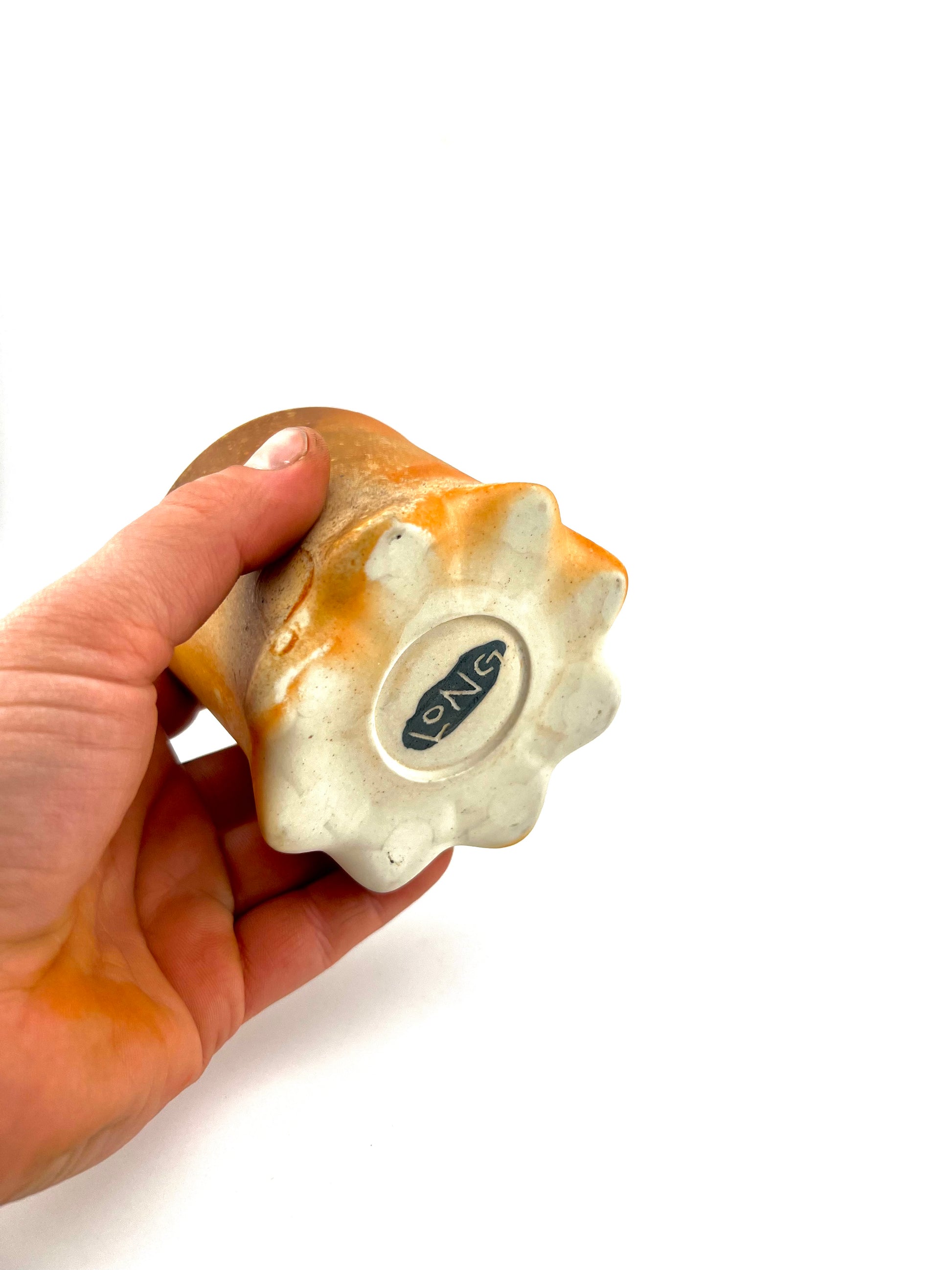 Wheel thrown and altered porcelain cup with flashing slip